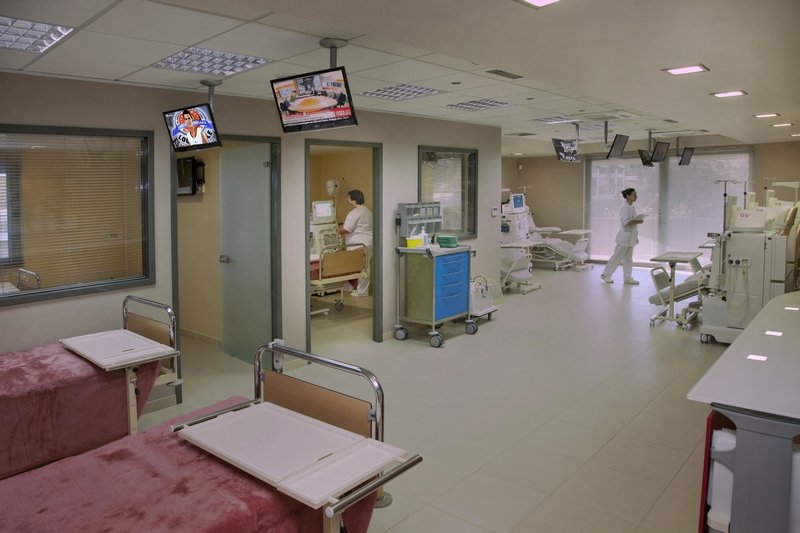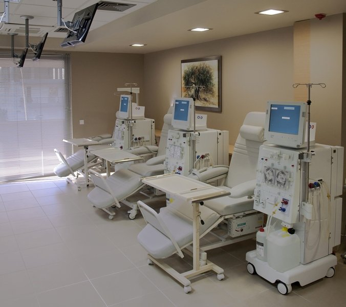 Η Μονάδα έχει 3 άριστα διαμορφωμένες χωριστές πολυτελείς αίθουσες αιμοκάθαρσης, αίθουσα επειγόντων περιστατικών και ξεχωριστή Οροθετική Μονάδα με αυτόνομο εξοπλισμό. Οι αίθουσες διαθέτουν κεντρικό κλιματισμό, ηλεκτροκίνητα κρεβάτια και πολυθρόνες με ατομική τηλεόραση, ατομικά ακουστικά ή επιλογή ακρόασης μουσικής.